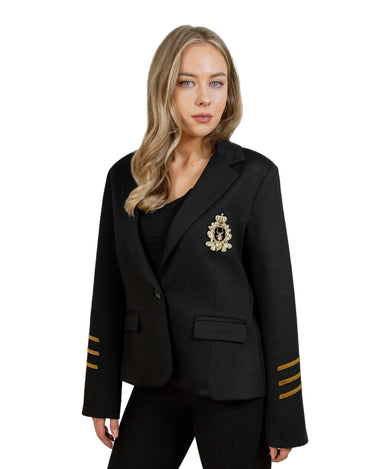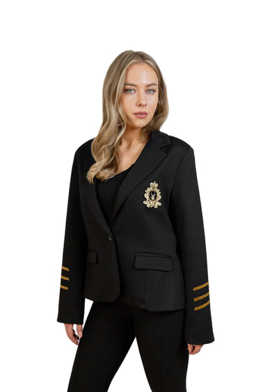 Blazer Negro con Detalle de Aplicación Bordada