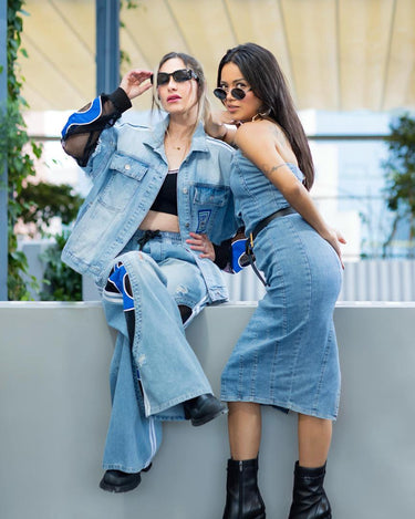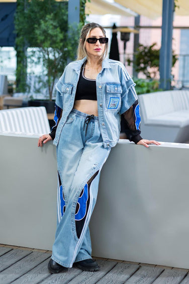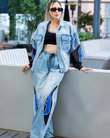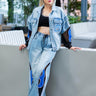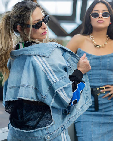 CHAMARRA DENIM MEZCLILLA AZUL CON LINEAS $2550-20% DE DESCUENTO