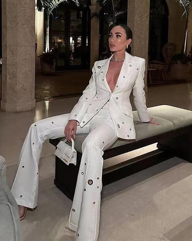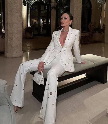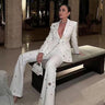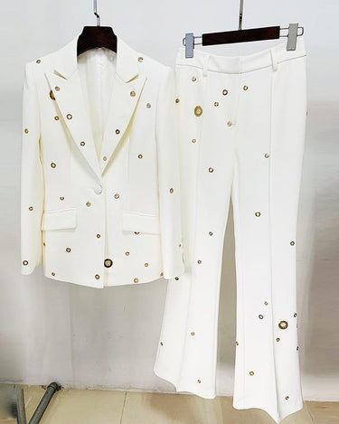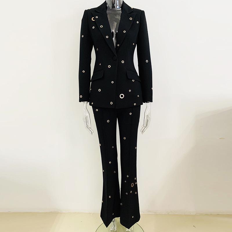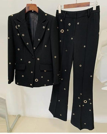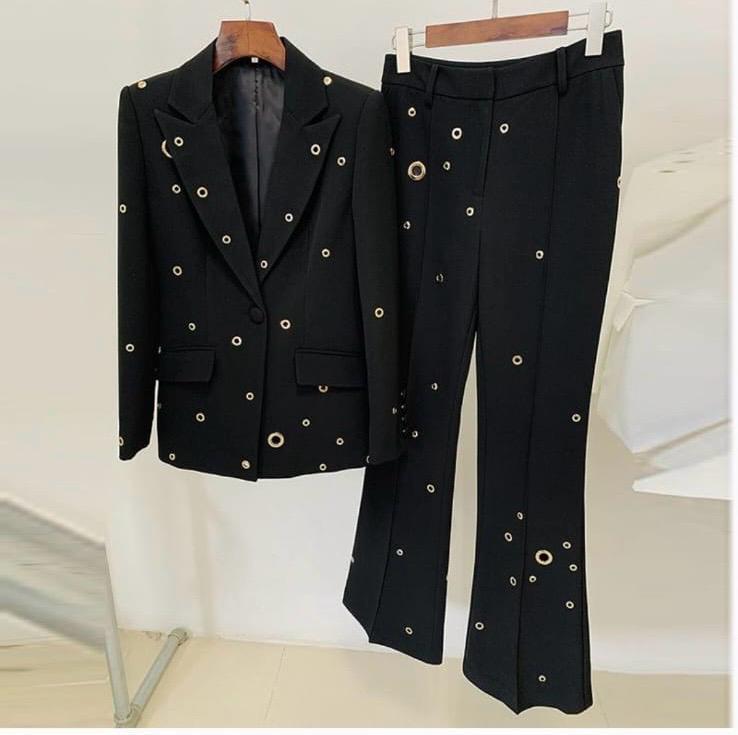 CONJUNTO DE TRAJES COLOR NEGRO Y BLANCO CON AROS DORADOS
